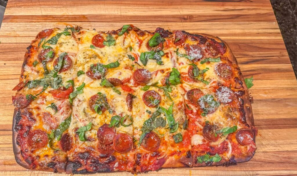 La pizza in teglia è una specialità tipica della cucina italiana, particolarmente diffusa nel centro e nord Italia. A differenza della classica pizza napoletana, che viene cotta direttamente su una pietra del forno, la pizza in teglia viene preparata in una teglia rettangolare o quadrata. Questo metodo di preparazione conferisce alla pizza una crosta spessa e soffice, possibile grazie all’accurata gestione della lievitazione della pizza. La sua consistenza è generalmente più morbida e il bordo più croccante, rendendola ideale per essere condivisa e servita in porzioni. Spesso viene condita con ingredienti freschi e vari, rendendola estremamente versatile.